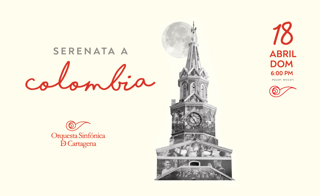 Esta Serenata a Colombia tendrá lugar en el Auditorio Getsemaní del Centro de Convenciones de Cartagena. Allí escucharemos obras del bogotano Alex Tobar, del santandereano Luis A. Calvo, del nariñense José Revelo, en arreglo del antioqueño Blas Emilio Atehortúa; y del bolivarense Lucho Bermúdez. Como bono especial, la serenata también incluirá música del ballet “El lago de los cisnes” del compositor ruso Piotr Ilich Tchaikovski.