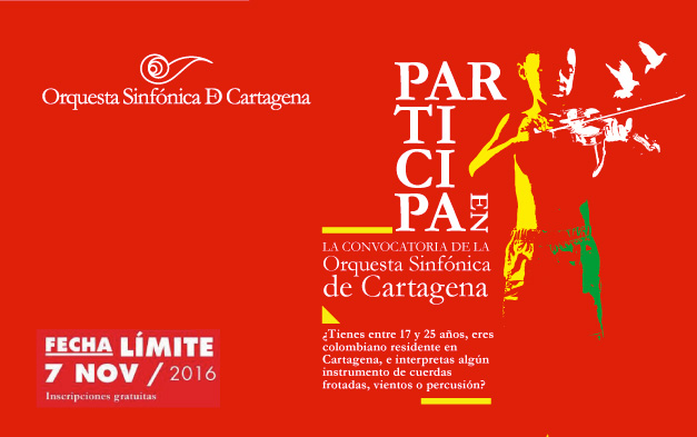 Cartagena de Indias, 27 de octubre de 2016 – Jóvenes intérpretes de instrumentos de cuerda frotada, vientos y percusión, ávidos de pertenecer a una agrupación musical de alta calidad que represente a la ciudad de Cartagena de Indias, serán los llamados a participar en la convocatoria para la conformación de la Orquesta Sinfónica de Cartagena.